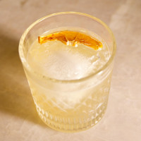 Gin, Limão siciliano, xarope de açúcar, angostura e finalizado com limão siciliano