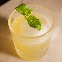 JACK DANIELS, XAROPE DE LIMÃO SICILIANO, XAROPE DE MEL, XAROPE DE AÇÚCAR FINALIZADO COM MONIN DE GENGIBRE.