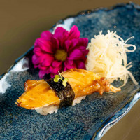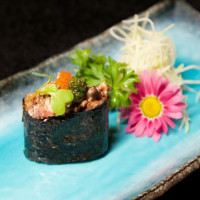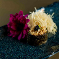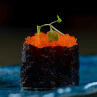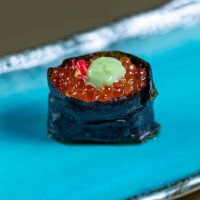 Arroz japonês, nori, salmão furai, siri, finalizado com ovas massago e azeite trufado.