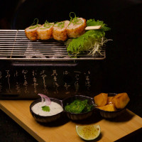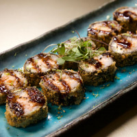 Arroz japonês, nori, salmão empanado, finalizado com cream cheese, molho tarê e raspas de limão taiti.