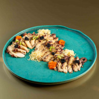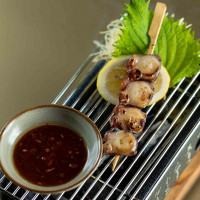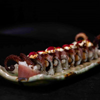 Arroz japonês, lâminas de polvo grelhado, yakiniku finalizas com shoyu, sal rosa e ovas tobiko black.