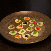1 vieira laminada, finalizadas com shoyu trufado, sal rosa e ovas tobiko black. (NÃO INCLUSO )