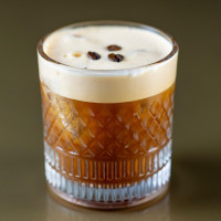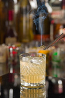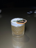 whisky, limão seciliano, xarope de açúcar, clara cromatizada de ovos e finalizado com angostura