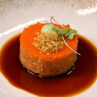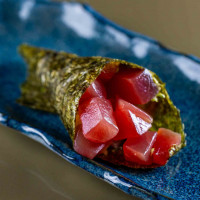 Atum picado na ponta da faca, pimenta sriracha, hondashi, ovas de massago, óleo de gergelim, nori e molho ponzu.