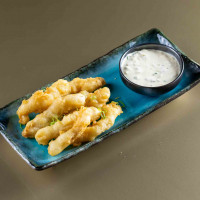 4 unidades de couve frito na massa tempura, finalizados com tartar de atum, tartar de salmão, maionese spicy, shoyu e gergelim.