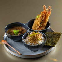 Arroz japonês, nori, atum, camarão grelhado, finalizado com lâminas de atum e maionese defumada.