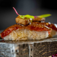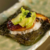 Arroz japonês, lâminas de enguia unagui finalizadas com shoyu, sal rosa, yakiniku, avocado ao mel trufado. (NÃO INCLUSO )