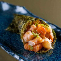 Salmão picado, pimenta sriracha, hondashi, ovas de massago, óleo de gergelim, molho trufado e nori.