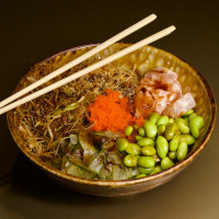 Arroz japonês, salmão, atum e peixe branco, finalizados com edamame, sunomono, quinoa frita e crispy de alho poró. (NÃO INCLUSO)