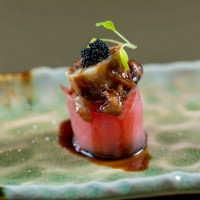 Arroz japonês, lâmina de atum, foie gras grelhado, finalizado com molho tarê. (NÃO INCLUSO )