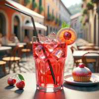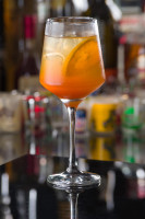 Rum 3 anos, aperol, xarope Monin de baunilha e suco de limão siciliano.