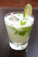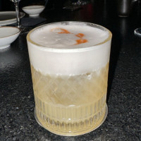 Saquê, suco de limão, xarope de gengibre, pepino, hortelã e espuma de maracujá.