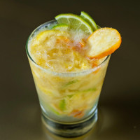 Cachaça, limão taiti, tangerina, manjericão e xarope de açúcar.